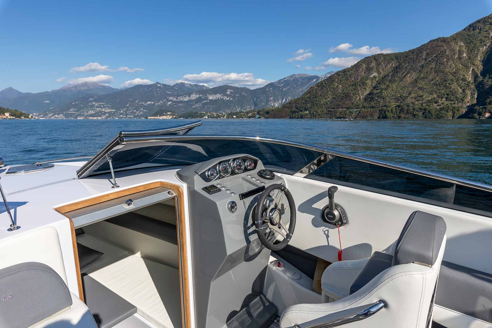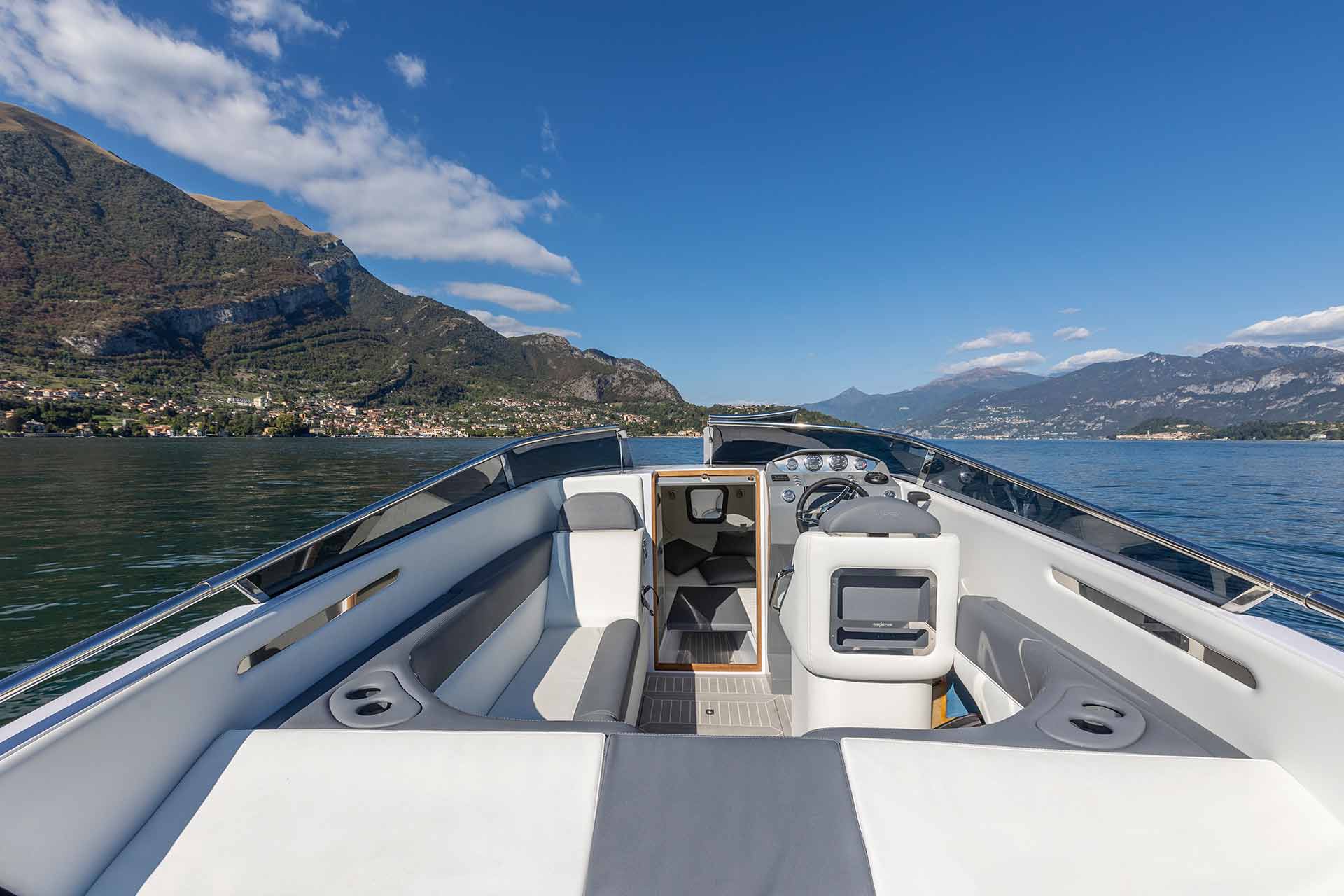 un motoscafo dal design sportivo e aerodinamico, ideale per tour esclusivi e shooting sul Lago di Como. 8 posti e massimo comfort